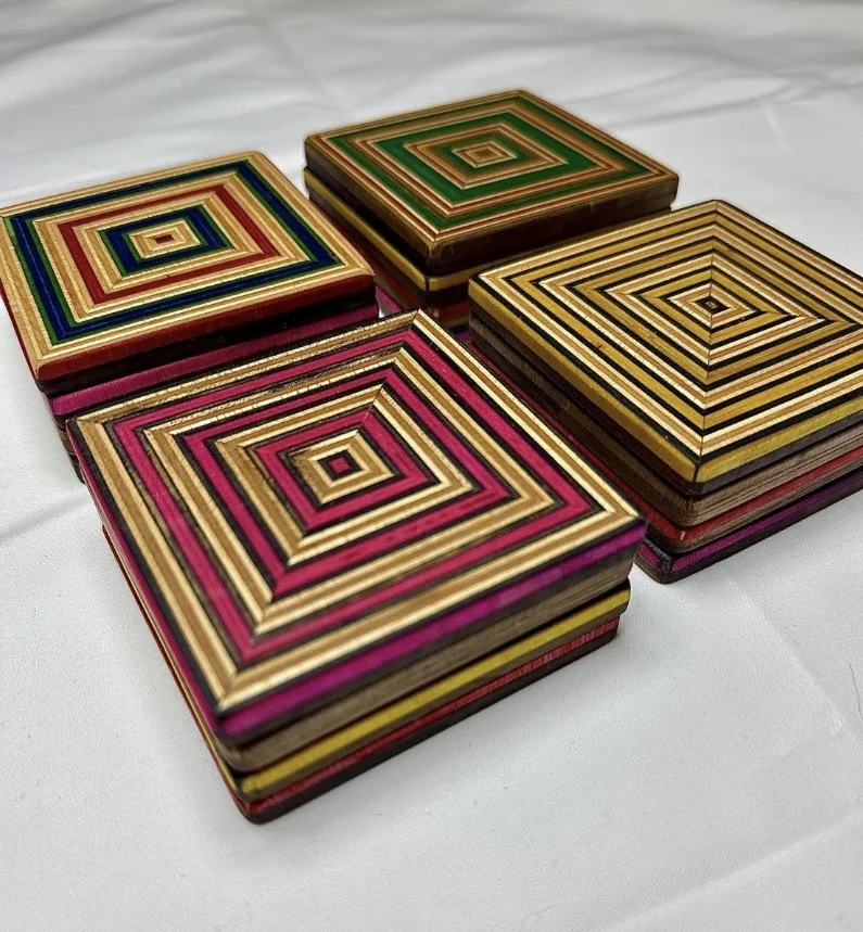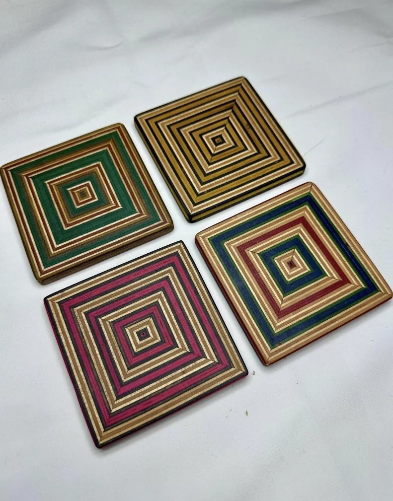 Categories: All Gifts Wall art and coffee tables All | Gifts | Wall art and coffee tables | Card holders from £40.00 Hand made skateboard and walnut coaster multi coloured pack of 4 £40.00 Spanish tile style zippo lighter £280.00 Y shape pattern recycled skateboard wall art £1,400.00 Fractal pattern wall art made from recycled skateboards £2,100.00 Coffee table made from recycled skateboards and reclaimed oak £2,700.00 Fabric folding knife £180.00 Damascus denim hatchet £729.00